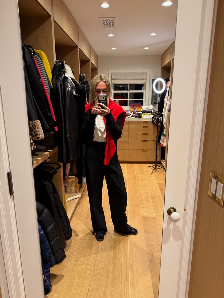 In Los Angeles, I dress pretty practically. My wardrobe is built around the rhythm of my real life: school drop-offs, fittings, installs meetings, errands.