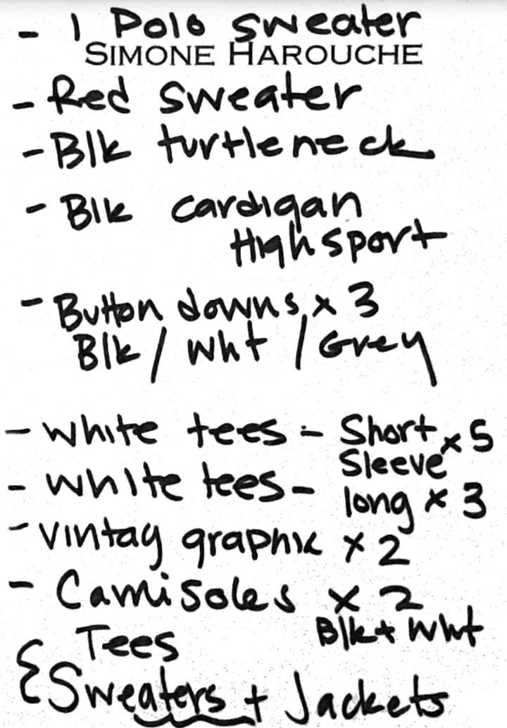 I’m going to Paris for five days and five nights for a little bit of Fashion Week, a little bit of work, a little bit of a girls trip and a birthday to celebrate (mine). There are shows, dinners, flea markets, shopping, meetings. The outfits need to be pulled together, but I also can’t arrive looking like I’m relocating to Europe with five trunks and a garment rack (although I did set up a rolling rack in my hotel room, because “once a stylist, always a stylist”). The goal is to either use one large suitcase or 2 medium sized and not be over the weight.