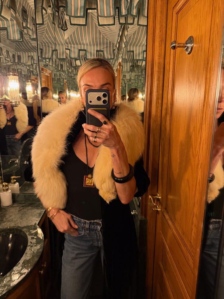 It’s where I reach for the pieces that feel a little more dramatic. A little more playful. A little more fashion. Things that might sit quietly in my closet at home suddenly feel exactly right there.
